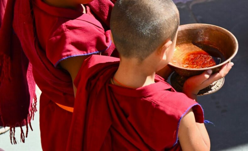 ■国はタイ。少年(9歳くらい)が両親の元を離れて仏門へ入った。寺の老師から、袈裟と経典とティンシャを受け取る。